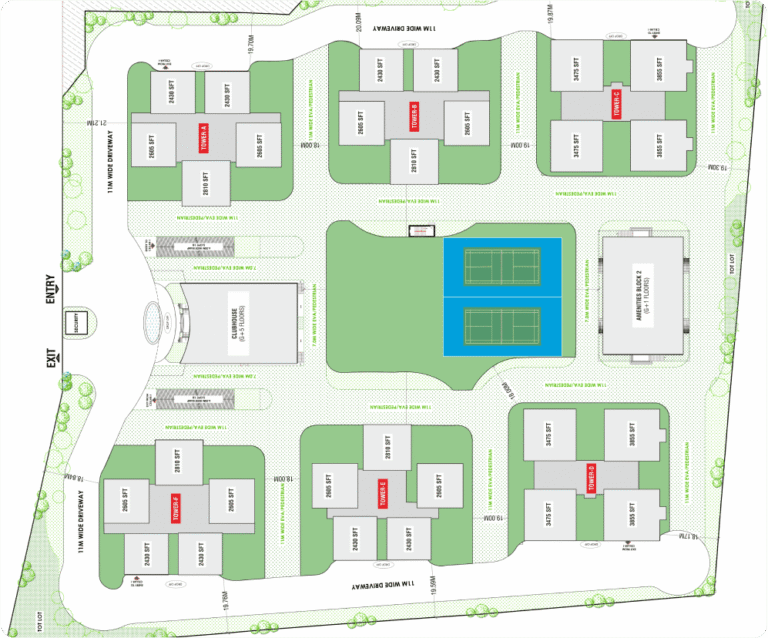 Each home is designed to maximize natural light and ventilation, with 11-ft slab height, corner-flat layouts, and Vastu-compliant planning ensuring positive energy in every corner. Residents enjoy a vehicle-free podium, EV charging for every flat, and over 70 premium amenities including clubhouses, wellness zones, sports arenas, and leisure spaces — all surrounded by open green landscapes.